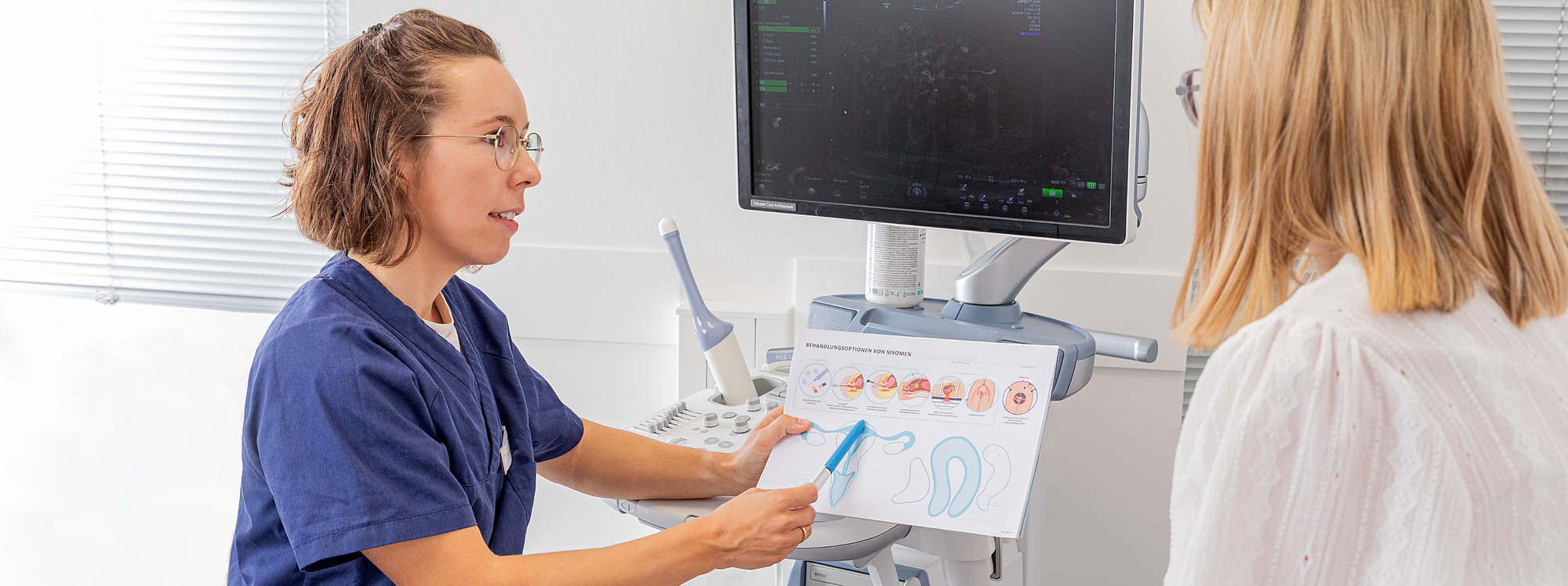 Je nach Größe und Lage des Myoms bieten wir verschiedene Therapien an: Hysteroskopische Entfernung bei kleinen Myomen, laparoskopische Operationen (Schlüssellochchirurgie) oder innovative Methoden wie die Radiofrequenzablation. Ziel ist immer eine möglichst schonende und individuelle Behandlung.
